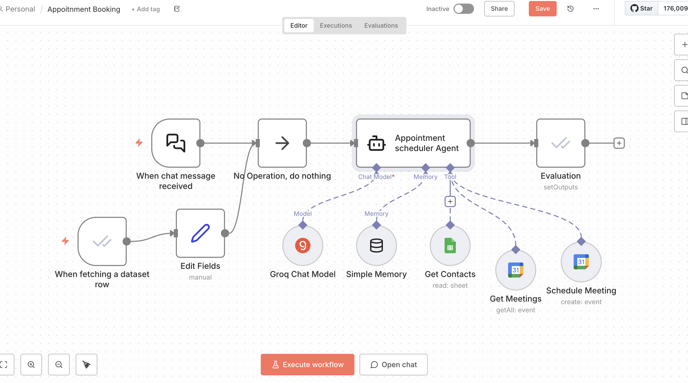 Screenshot of Workflow ———> Appointment scheduling Agent